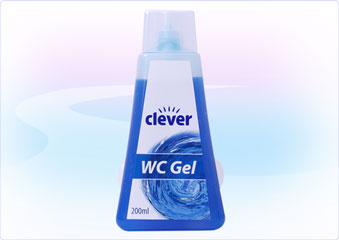 Produkt Clever WC Gel. Saubere Reinigung und ein Dufterlebnis der besonderen Art bei jeder Spülung mit dem Clever WC Gel. Modernste Düfte, Körbchen und Farben machen das Clever WC Gel zu einer Bereicherung in der Toilette. Der besonders ergiebige Körbchen wirkt, abhängig von der Häufigkeit der Spülung, über Wochen.